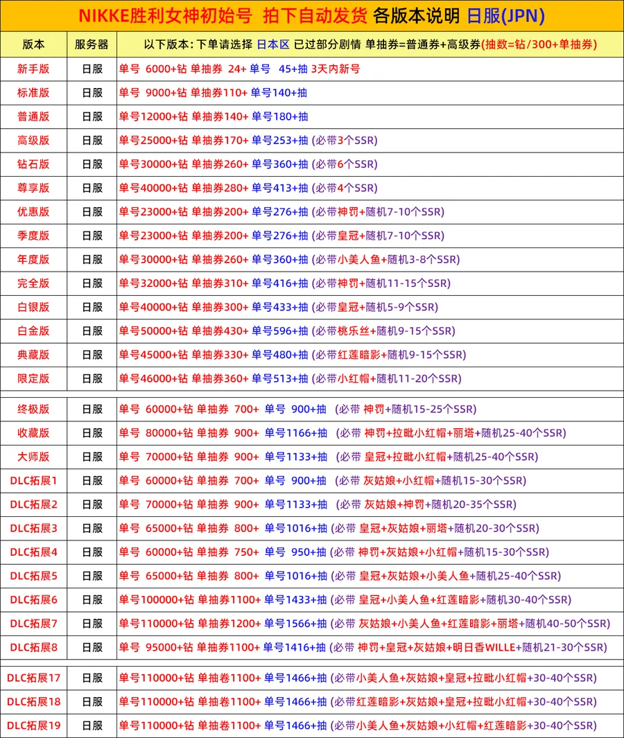 全 8591 勝利女神:妮姬初始號港台服自選組合開局號資源石頭自選自抽號