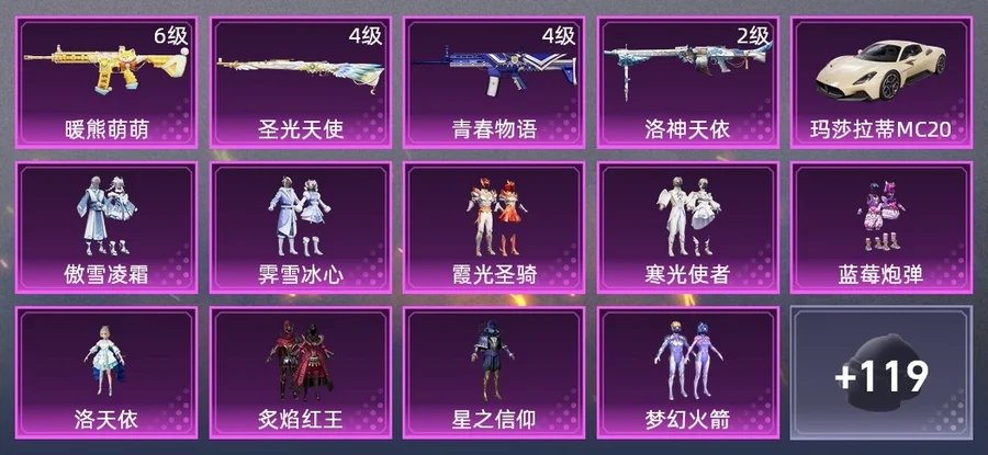 MG3-驚鴻俠骨,GROZA-恐龍拽拽,AC-VAL-甜心亞夢,Win94-夏日綿綿冰,S12K-瑞龍福將,M249-深山詭影,DP-28-錦繡火鯉,GROZA-異彩先驅,M762-奇異狩獵者,Kar98K-夢幻火箭,M416-暖熊萌萌,SLR-嬌憨豬豬,AC-VAL-彩虹甜喵,P90-飛馳魅影,DBS-甜心亞夢,AKM-奇異狩獵者,M249-鐳射皇者,M762-瑞龍福將,DBS-聖光天使,AUG-耀粉歌者,蜜獾-嬌憨豬豬,湯姆遜-奇異狩獵者,DP-28-甜心亞夢,M16A4-甜心亞夢,Mk47-洛神天依,VSS-鐳射皇者,Mini14-異彩先驅,M416-潮汐統領,QBZ-妙趣可麗,S1897-鐳射皇者,UZI-嬌憨豬豬,AKM-四聖煥新,Kar98K-聖光天使,S686-奇異狩獵者,Win94-瑞龍福將,湯姆遜-異彩先驅,M24-奇異狩獵者,M417-驚鴻俠骨,G36C-暗夜玫瑰,QBZ-洛神天依,M24-影襲,AKM-環太平洋,M762-鐳射皇者,S12K-嬌憨豬豬,VSS-繁花小夜曲,MG3-瑞龍福將,S1897-飛馳魅影,M249-四聖煥新,MG3-洛神天依,Vector-槍炮玫瑰,Kar98K-飛馳魅影,AUG-聖光天使,蜜獾-垂柳戲鴨,MP5K-異彩先驅,M762-暖熊萌萌,S12K-垂柳戲鴨,AKM-恐龍拽拽,Kar98K-洛神天依,Mk14-童趣迷兔,M200-驚鴻俠骨,Mini14-夢幻火箭,SCAR-L-青春物語,GROZA-春暖花開,QBZ-飛馳魅影