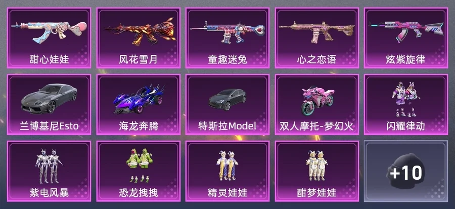 AKM-炫紫旋律,M416-風花雪月,M416-心之戀語,SCAR-L-童趣迷兔,M762-甜心娃娃