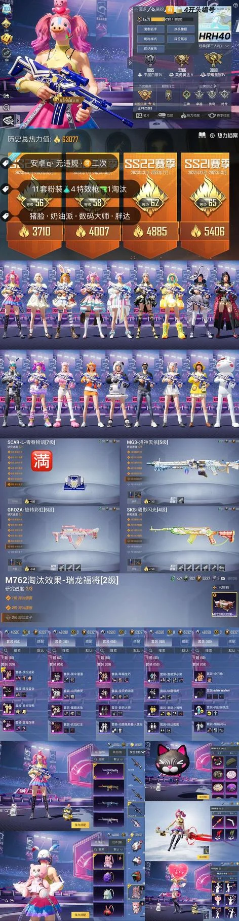 S686-奇異狩獵者,GROZA-林間仙鹿,M762-瑞龍福將,SKS-碧影閃光,MG3-洛神天依,GROZA-旋轉彩虹,SCAR-L-青春物語,M762-風花雪月,湯姆遜-林間仙鹿