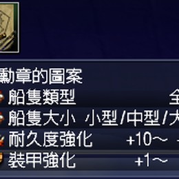 船員用勝利緞帶 ( 縱帆+6,橫帆+12,轉向+1,連攜齊射r5,砲擊戰COST +1)