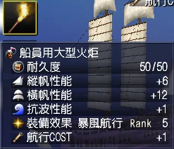 船員用大型火炬 ( 縱帆+6,橫帆+12,抗波+1,暴風航行r5,航行COST+1)