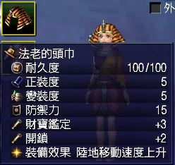 法老的頭巾( 開鎖+2,財寶+3,陸地移動速度上升r3)
