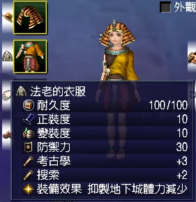 法老的衣服( 搜索+2,考古+3,抑制地城體力減少r10)