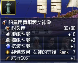 船員用青銅女神 ( 縱帆+18,橫帆+3,抗波+1,女神守護r7,航行COST+1)