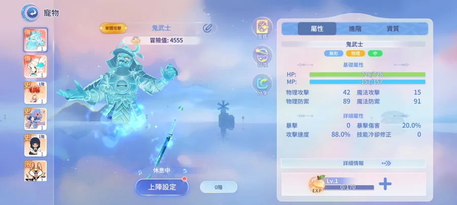 賀歲喵喵/41等男弓箭手/雙紅寵/鬼武士+安塔夏o型+自由轉職券+多資源鑽石+造型時裝/綁定全新google整組給買家