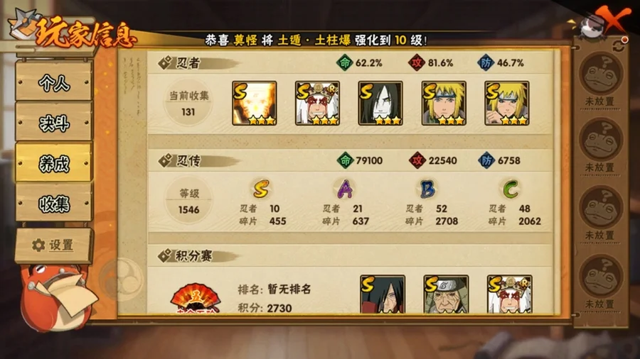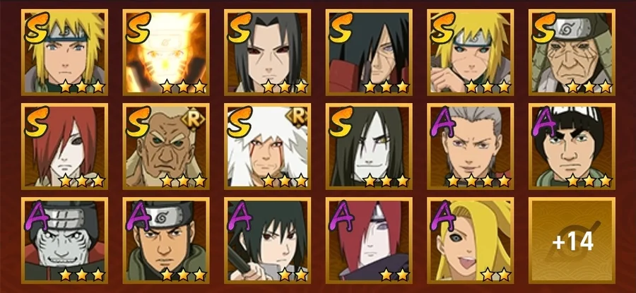 飛段,穢土長門,舞之豪傑自來也,阿斯瑪,鬼鮫,須佐佐助,蠍,斗篷兜,博人傳木葉丸,青年長門,穢土斑,忍戰我愛羅,死司飛段,穢土日斬,穢土迪達拉,三代雷影,大蛇丸,曉大蛇丸,曉創生角都,仙人鳴人,鼬,忍戰丁次,凱,地怨虞角都,九喇嘛鳴人,博人傳黑土,水門,疾風傳我愛羅,穢土水門,穢土鼬,近松十人衛千代