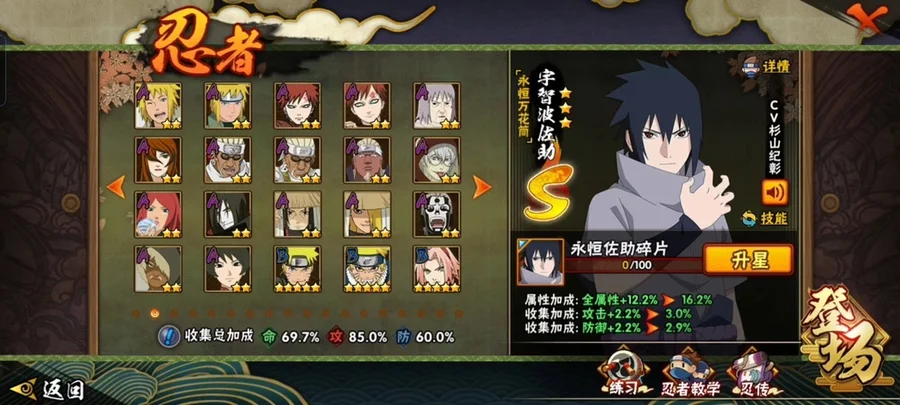 迪達拉,猿飛阿斯瑪,達魯伊·博人傳,艾·青年,邁特凱,蠍,幹柿鬼鮫,飛段,飛段·死司憑血,奇拉比,宇智波鼬,宇智波佐助·萬花筒寫輪眼,我愛羅·疾風傳,我愛羅·忍界大戰,照美冥·五代目水影,秋道丁次·忍界大戰,奇拉比·忍界大戰,忍戰寧次