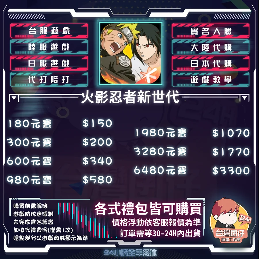 6️台灣囝仔台陸手遊代儲純粹為協助代儲服務,僅收取服務費,無賺取額外差價。