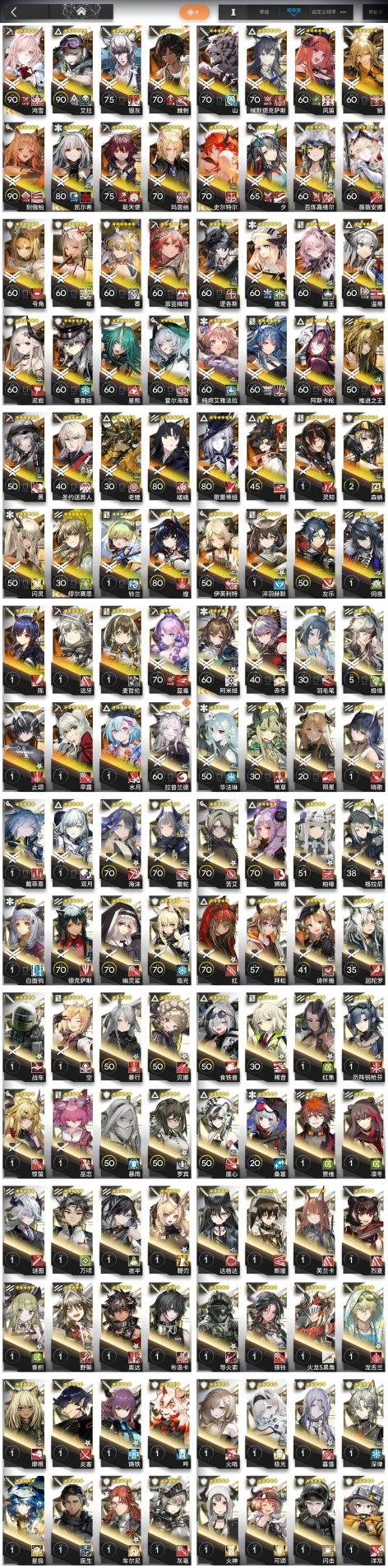歷陣銳槍芬,安哲拉,斷崖,雪雉,和絃,暴行,灰喉,掠風,梅爾,普羅旺斯,桑葚,特米米,拜松,極境,獅蠍,阿米婭,隱現,烏有,絮雨,風丸,凜冬,吽,德克薩斯,凜視,戰車,暮落,閃擊,空構,羅賓,苦艾,烈夏,星極,綺良,濯塵芙蓉,槐琥,龍舌蘭,九色鹿,格拉尼,耶拉,星源,火神,幽靈鯊,崖心,初雪,賈維,天火,驚蟄,洛洛,寒芒克洛絲,玫拉,葦草,謎圖,灰毫,可頌,空,錫蘭,藍毒,白麵鴞,四月,布洛卡,華法琳,貝娜,哈洛德,亞葉,蝕清,蜜蠟,臨光,霜華,紅,雷蛇,送葬人,夜半,隕星,柏喙,鐸鈴,火龍S黑角,食鐵獸,車爾尼,見行者,因陀羅,青枳,子月,夜魔,深律,暴雨,月禾,熔泉,拉普蘭德,芙蘭卡,詩懷雅,愛麗絲,明椒,洋灰,真理,巫戀,炎獄炎熔,火哨,夏櫟,承曦格雷伊,萊恩哈特,炎客,赤冬,鑄鐵,赫默,懾砂,阿羅瑪,極光,鞭刃,寒檀,海蒂,野鬃,埃拉託,但書,薄綠,微風,守林人,奧達,卡夫卡,圖耶,奧斯塔,白金,羽毛筆,稀音,摩根