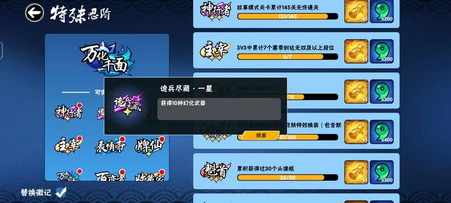 二區鷹揚6命衛鯉星閃伊鶴衛鯉雙專武一幻化,2命紫原帶專武 萬化千面 詭兵1稱號 衛鯉全造型 西蘭帶造型 官服渠道提供換綁材料2 忍者必須死三 忍3