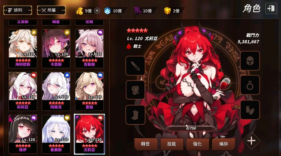 💖全角色滿練度120 等、10 突破、300 轉、3000 親密度、強化技能全滿