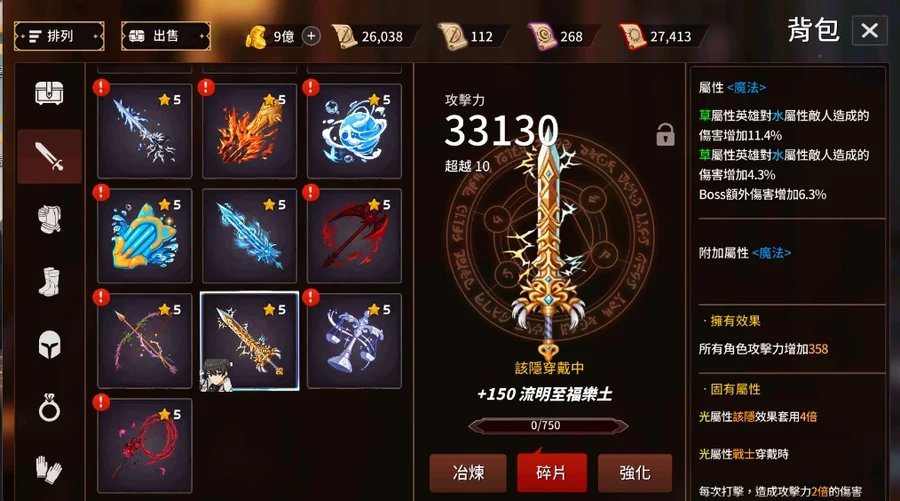 全武器裝備(截至目前都有更新)、150 等、突破10