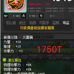 ✿強哥唷 - 轟擊中心火 - 18%物攻40B傷.附加6%物(重砲副武)傳說副武