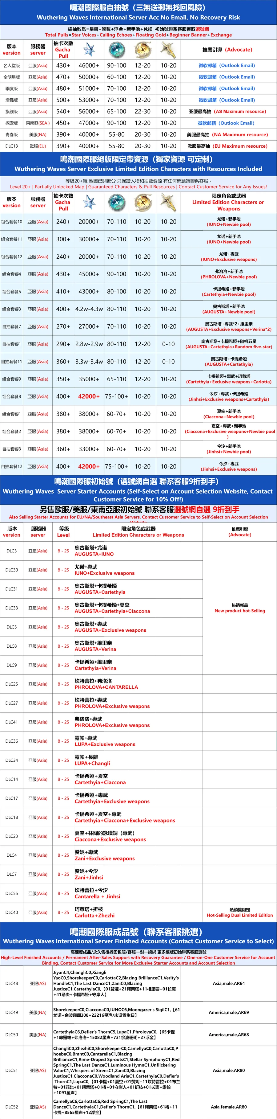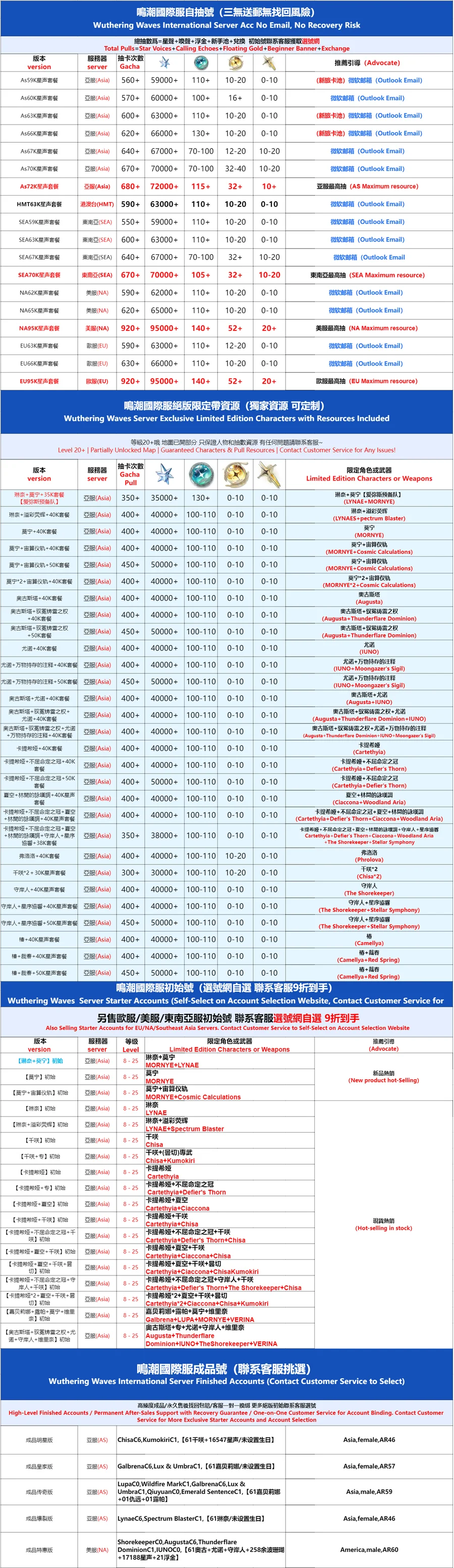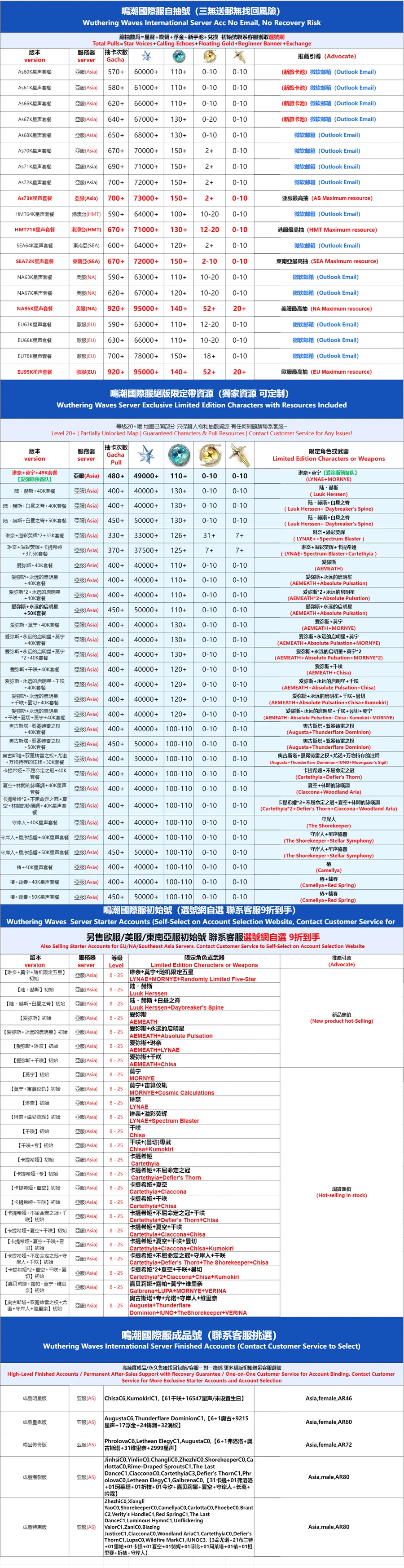 全 8591 首家 鳴潮國際服初始號自抽號亞服自選石頭號歐美服國服官卡卡羅吟霖鑑心維裡奈限定專武莫特斐白芷港台東南亞組合