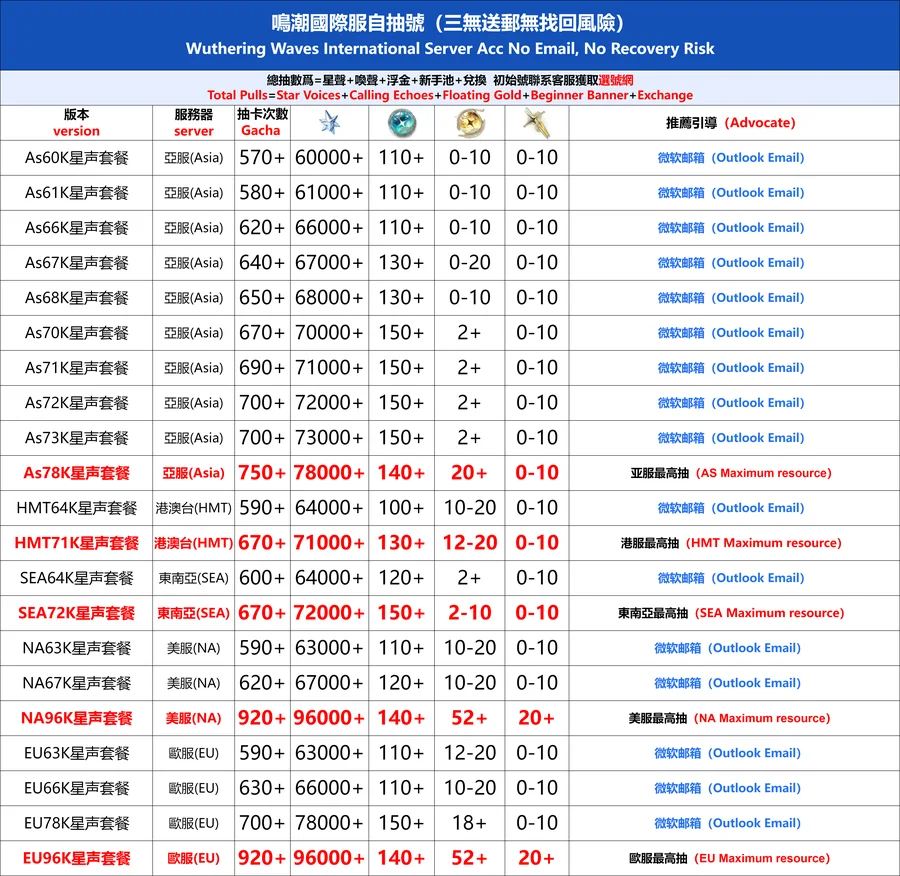 全 8591 首家 鳴潮國際服初始號自抽號亞服自選石頭號歐美服國服官卡卡羅吟霖鑑心維裡奈限定專武莫特斐白芷港台東南亞組合