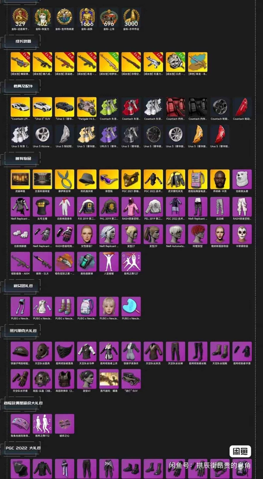 絕地求生pubg 滿級悟空 滿級金龍 滿級八戒 滿級彈珠滿級聖誕ak 滿級mp5k 滿級白虎鍋 二級德拉貢 尼爾全套 全套蘭博基尼帶大廳 女團丹尼爾 電磁揹包 喜歡就拍下吧