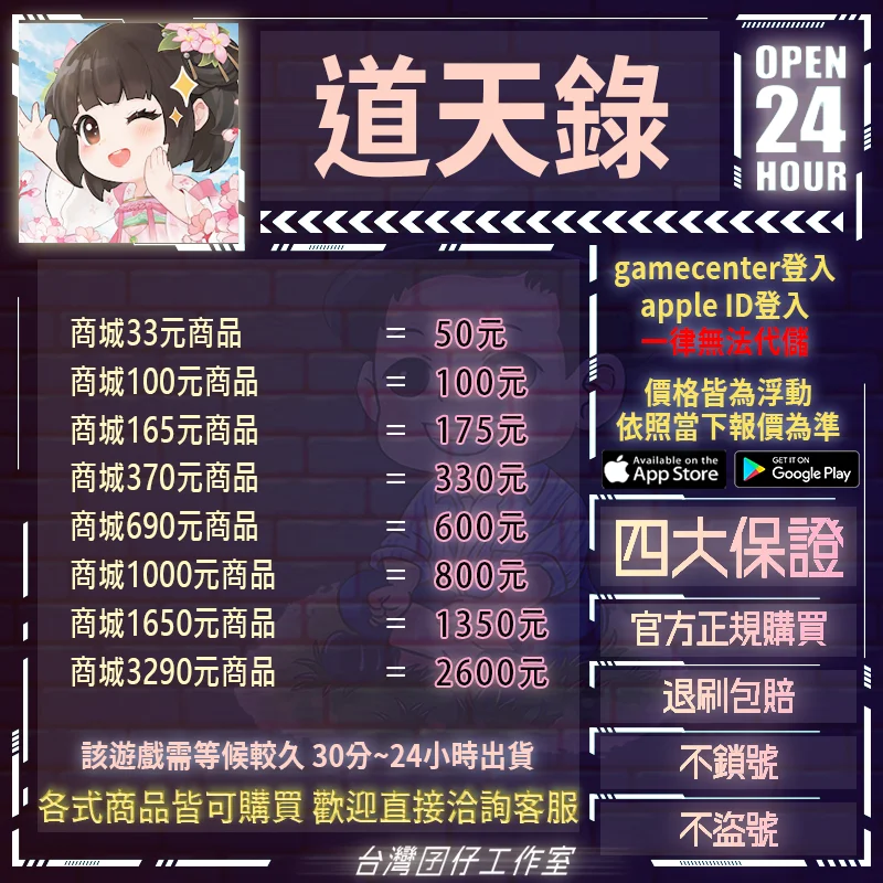 6.台灣囝仔台陸手遊代儲,純粹提供代儲服務並收取服務費,無賺取中間差價