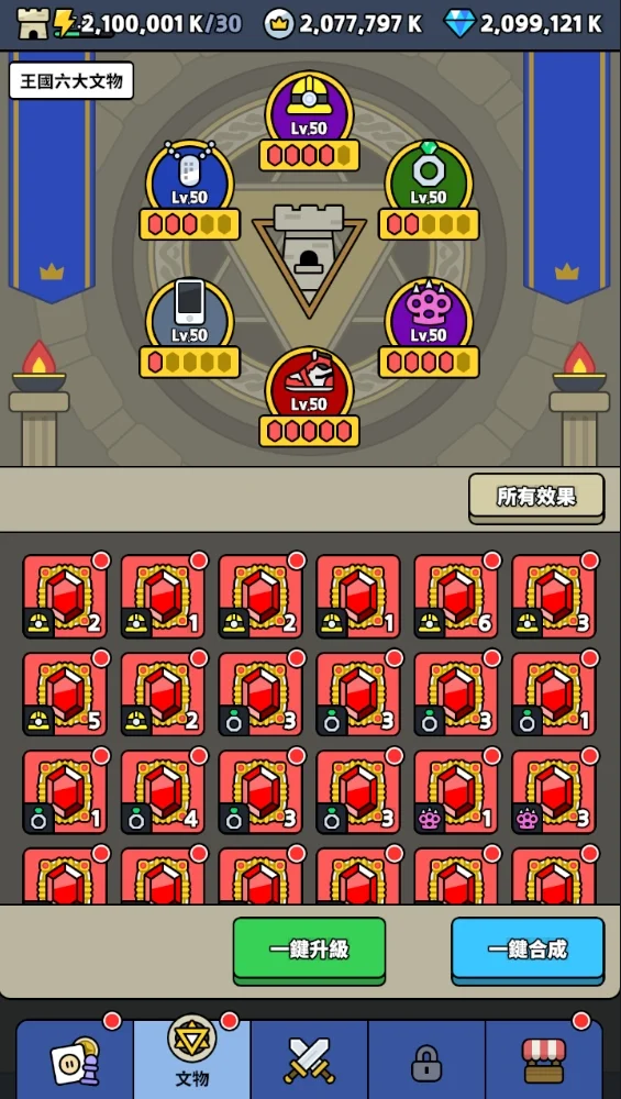 21 億鑽石 + 21 億體力 + 21 億銀幣 + 21 億魔法果實 + 六大文物滿等