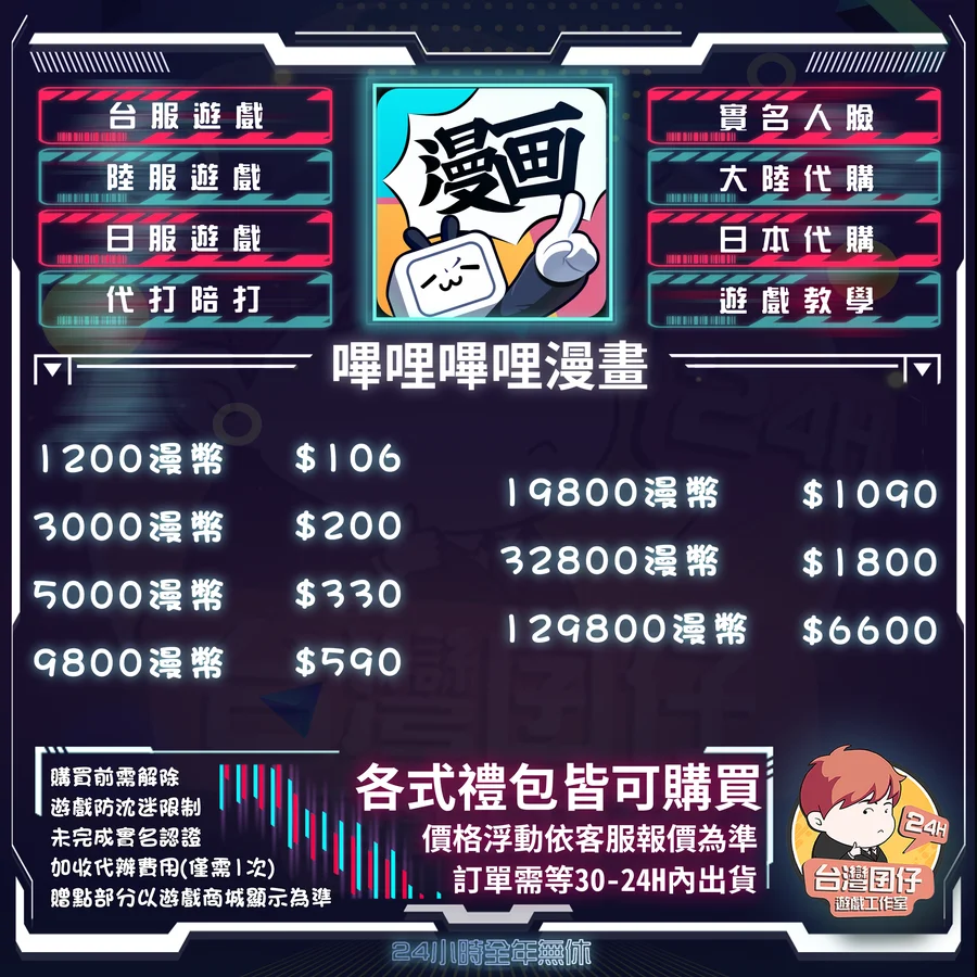 🏆嗶哩嗶哩漫畫 陸服代儲賣場|