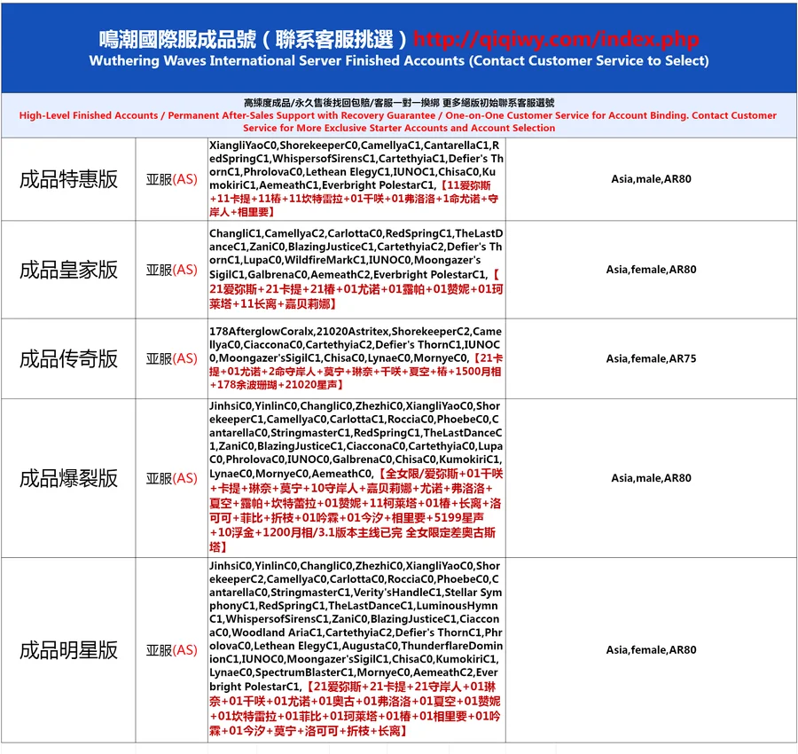 全 8591 首家 鳴潮國際服初始號自抽號亞服自選石頭號歐美服國服官卡卡羅吟霖鑑心維裡奈限定專武莫特斐白芷港台東南亞組合