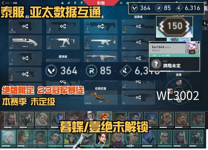 QWL3002丨泰服 等級150 賽季未定級 歷史白金 極品賬號【限定23冠軍暴徒 海洋套裝】顯示卡蝴蝶 (全滿)海洋近戰 (全滿)牛扇(全滿) 顯示卡暴徒 混沌暴徒 (全滿)離子幻象(全滿) 惡鬼幻象(全滿) 海洋暴徒 (全滿)海洋捍衛者 (全滿)海洋惡靈 (全滿)魔術幻象 起源暴徒 掠奪神射(全滿) 海洋短管 英雄22(缺少英雄,一覺,慕碟)r點85