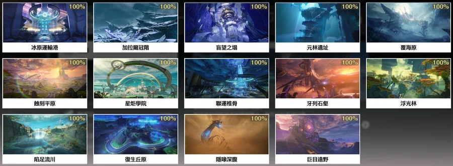 大小信標+定風鐸+寶箱(含隱藏寶箱)+伏霜蟲+蝴蝶+觀景點+區域任務+隱藏任務