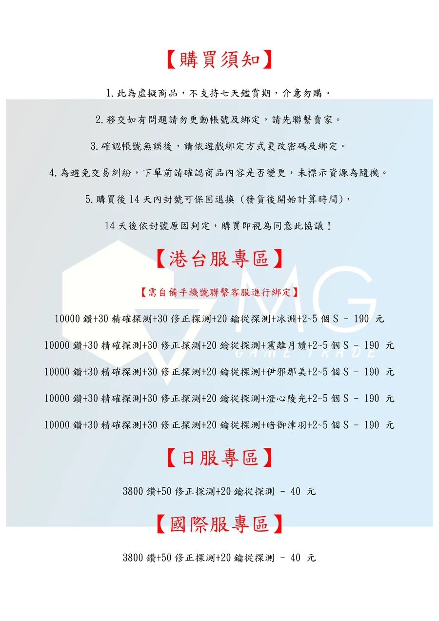 14天後依封號原因判定,購買即視為同意此協議!