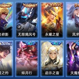 蔡文姬-舞動綠茵,蘭陵王-隱刃,張良-古海尋蹤,呂布-聖誕狂歡,桑啟-畫中遊,姬小滿-零食大作戰,劉禪-喚靈魔甲,白起-樂園追獵者,李元芳-逐浪之夏,豬八戒-潮玩探月行,牛魔-牛運亨通,海月-幻泉霧影,阿軻-節奏熱浪,廉頗-地獄巖魂,典韋-黃金武士,貂蟬-聖誕戀歌,阿古朵-熊喵少女,關羽-龍騰萬里,諸葛亮-黃金分割率,程咬金-功夫廚神,劉備-潮玩造夢師,伽羅-花見巫女,戈婭-危途狂花,安琪拉-玩偶對對碰,艾琳-奇遇舞章,明世隱-占星師,蒙恬-蔚藍守將,蒙犽-胡桃狂想曲,曹操-超能戰警,司空震-啟蟄,魯班七號-電玩小子,張良-千籌問戰,狂鐵-特工戰影,馬可波羅-激情綠茵,墨子-龍騎士,夏洛特-永晝,瑤-遇見神鹿,東皇太一-東海龍王,蒙恬-秩序獵龍將,雅典娜-戰爭女神,程咬金-無雙福將,貂蟬-異域舞娘,小喬-繽紛獨角獸,蒙犽-歸虛夢演,瀾-賞金獵手,米萊狄-契約魔法,阿軻-暗夜貓娘,甄姬-冰雪圓舞曲,不知火舞-魅語,橘右京-修羅,娜可露露-晚螢,孫尚香-沉穩之力,劉邦-虎嘯劍宗,露娜-哥特玫瑰,雲纓-赤焰之纓,瀾-孤獵,王昭君-精靈公主,典韋-鐵甲之心,黃忠-芝加哥教父,趙雲-忍·炎影,劉禪-秘密基地,大喬-守護之力,沈夢溪-鯊炮海盜貓,魯班大師-乓乓大師,蘇烈-堅韌之力,老夫子-潮流仙人,孫策-貓狗日記,鏡-冰刃幻境,羋月-紅桃皇后,周瑜-海軍大將,盾山-圓桌騎士,宮本武藏-永珍初新,韓信-街頭霸王,成吉思汗-維京掠奪者,曹操-幽靈船長,哪吒-三太子,哪吒-次元突破,趙雲-未來紀元,達摩-大發明家,魯班七號-黑桃隊長,李元芳-特種部隊,狄仁傑-錦衣衛,魯班大師-歸虛夢演,劉備-萬事如意,盤古-創世神祝,姜子牙-熾熱元素使,西施-歸虛夢演,公孫離-無限星賞官,夏侯惇-戰爭騎士,阿軻-愛心護理,項羽-蒼穹之光,馬超-倖存者,孫臏-歸虛夢演,王昭君-偶像歌手,劉禪-天才門將,曹操-死神來了,雲中君-荷魯斯之眼,花木蘭-兔女郎,妲己-魅力維加斯,白起-星夜王子,狄仁傑-鷹眼統帥,張飛-五福同心,孫策-海之征途,曜-歸虛夢演,呂布-野性能量,上官婉兒-修竹墨客,裴擒虎-梅西,伽羅-箭羽風息,小喬-丁香結,孫尚香-水果甜心,宮本武藏-未來紀元,劉邦-德古拉伯爵,夏侯惇-乘風破浪,宮本武藏-鬼劍武藏,白起-白色死神,莊周-奇妙博物學,明世隱-虹雲星官,張良-幽蘭居士,豬八戒-年年有餘,嫦娥-露花倒影,孫尚香-火炮千金,李信-灼熱之刃,項羽-科學大爆炸,司馬懿-魘語軍師,沈夢溪-棒球奇才,安琪拉-如懿,老夫子-功夫老勺,鬼谷子-幻樂之宴,達摩-拳王,扁鵲-化身博士,劉備-紐約教父,墨子-進擊墨子號,元歌-午夜歌劇院,鎧-曙光守護者,牛魔-制霸全明星,狂鐵-命運角鬥場,百里守約-特工魅影,韓信-教廷特使,張良-一千零一夜,弈星-踏雪尋梅,劉備-漢昭烈帝,王昭君-幻想奇妙夜,裴擒虎-街頭旋風,鍾無豔-海灘麗影,花木蘭-水晶獵龍者,楊玉環-霓裳曲,安琪拉-心靈駭客,亞瑟-心靈戰警,公孫離-花間舞,程咬金-華爾街大亨,妲己-仙境愛麗絲,宮本武藏-霸王丸,女媧-尼羅河女神,阿軻-致命風華,夢奇-美夢成真,蘇烈-愛與和平,鍾馗-地府判官,甄姬-花好人間,露娜-緋紅之刃,蘭陵王-暗隱獵獸者,百里守約-絕影神槍,鎧-龍域領主,楊戩-埃及法老,妲己-少女阿狸,大喬-伊勢巫女,亞瑟-死亡騎士