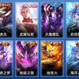 虞姬-啟明星使,百里玄策-白虎志,楊戩-永曜之星,呂布-天魔繚亂,諸葛亮-武陵仙君