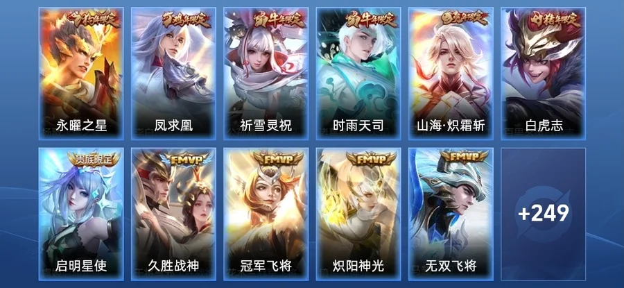 甄姬-冰雪圓舞曲,阿軻-愛心護理,狂鐵-特工戰影,張良-古海尋蹤,典韋-黃金武士,孫尚香-沉穩之力,萊西奧-西部遊俠,項羽-帝國元帥,豬八戒-潮玩探月行,狄仁傑-錦衣衛,白起-白色死神,小喬-繽紛獨角獸,海月-幻泉霧影,孫尚香-水果甜心,戈婭-危途狂花,西施-歸虛夢演,蒙恬-蔚藍守將,王昭君-精靈公主,宮本武藏-鬼劍武藏,劉禪-喚靈魔甲,桑啟-畫中遊,魯班七號-電玩小子,夏洛特-永晝,貂蟬-異域舞娘,呂布-野性能量,程咬金-無雙福將,劉邦-虎嘯劍宗,劉禪-天才門將,李元芳-逐浪之夏,王昭君-幻想奇妙夜,鍾無豔-生化警戒,金蟬-前塵,公孫離-無限星賞官,孫臏-歸虛夢演,墨子-金屬風暴,女媧-尼羅河女神,娜可露露-晚螢,蔡文姬-薔薇王座,花木蘭-劍舞者,魯班大師-乓乓大師,雲纓-赤焰之纓,劉禪-秘密基地,孫臏-天使之翼,安琪拉-心靈駭客,張飛-亂世虎臣,宮本武藏-永珍初新,劉禪-英喵野望,司空震-啟蟄,瀾-孤獵,蒙恬-秩序獵龍將,姜子牙-熾熱元素使,花木蘭-兔女郎,明世隱-虹雲星官,弈星-踏雪尋梅,甄姬-花好人間,阿古朵-熊喵少女,沈夢溪-鯊炮海盜貓,老夫子-潮流仙人,趙雲-忍·炎影,盾山-圓桌騎士,太乙真人-圓桌騎士,橘右京-修羅,趙雲-未來紀元,鏡-冰刃幻境,不知火舞-魅語,高漸離-金屬狂潮,墨子-龍騎士,宮本武藏-霸王丸,狄仁傑-鷹眼統帥,瑤-森,豬八戒-年年有餘,大喬-守護之力,魯班七號-黑桃隊長,哪吒-次元突破,夏侯惇-戰爭騎士,妲己-仙境愛麗絲,蒙犽-歸虛夢演,白起-星夜王子,虞姬-加勒比小姐,劉備-漢昭烈帝,李元芳-特種部隊,馬超-倖存者,魯班大師-歸虛夢演,哪吒-三太子,狂鐵-命運角鬥場,曜-歸虛夢演,夢奇-美夢成真,張飛-五福同心,諸葛亮-星航指揮官,伽羅-箭羽風息,曹操-幽靈船長,楊玉環-霓裳曲,雲中君-荷魯斯之眼,呂布-聖誕狂歡,嫦娥-露花倒影,蘇烈-堅韌之力,沈夢溪-棒球奇才,孫策-貓狗日記,劉備-萬事如意,盤古-創世神祝,孫策-海之征途,安琪拉-玩偶對對碰,雅典娜-戰爭女神,伽羅-花見巫女,程咬金-華爾街大亨,張良-天堂福音,蘭陵王-暗隱獵獸者,上官婉兒-修竹墨客,李白-敏銳之力,司馬懿-魘語軍師,阿軻-節奏熱浪,李信-灼熱之刃,蘭陵王-隱刃,鍾馗-地府判官,成吉思汗-維京掠奪者,大喬-伊勢巫女,盾山-極冰防禦線,墨子-進擊墨子號,韓信-街頭霸王,楊戩-埃及法老,鬼谷子-幻樂之宴,扁鵲-化身博士,干將莫邪-第七人偶,公孫離-花間舞,李白-範海辛,裴擒虎-梅西,元歌-午夜歌劇院,鎧-曙光守護者,花木蘭-水晶獵龍者,裴擒虎-街頭旋風,達摩-大發明家,劉邦-德古拉伯爵,王昭君-偶像歌手,嬴政-暗夜貴公子,曹操-死神來了,韓信-教廷特使,姜子牙-時尚教父,百里玄策-威尼斯狂歡,百里守約-特工魅影,老夫子-功夫老勺,蘇烈-愛與和平,諸葛亮-黃金分割率,關羽-龍騰萬里,阿軻-致命風華,東皇太一-東海龍王,百里守約-絕影神槍,露娜-紫霞仙子,小喬-萬聖前夜,鍾無豔-海灘麗影,魯班七號-木偶奇遇記,呂布-末日機甲,妲己-女僕咖啡,黃忠-芝加哥教父,宮本武藏-未來紀元,后羿-精靈王,李白-千年之狐,劉備-紐約教父,趙雲-白執事,馬可波羅-激情綠茵,孫悟空-西部大鏢客,妲己-魅力維加斯,亞瑟-死亡騎士,妲己-少女阿狸