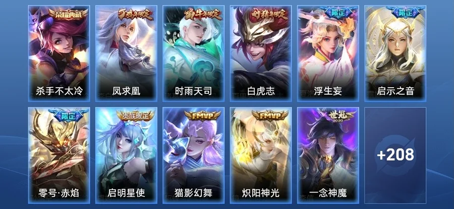 程咬金-無雙福將,扁鵲-救世之瞳,趙雲-白執事,劉邦-聖殿之光,花木蘭-兔女郎,夏侯惇-戰爭騎士,張良-古海尋蹤,項羽-蒼穹之光,豬八戒-潮玩探月行,大喬-守護之力,太乙真人-勁辣紅鍋,露娜-哥特玫瑰,老夫子-潮流仙人,孫悟空-西部大鏢客,趙懷真-太極少年,牛魔-西部大鏢客,劉禪-喚靈魔甲,墨子-龍騎士,不知火舞-魅語,孫臏-未來旅行,白起-樂園追獵者,狄仁傑-錦衣衛,牛魔-牛運亨通,弈星-踏雪尋梅,太乙真人-圓桌騎士,程咬金-星際陸戰隊,鎧-龍域領主,蘭陵王-隱刃,魯班七號-木偶奇遇記,明世隱-占星師,海月-幻泉霧影,阿軻-節奏熱浪,百里守約-特工魅影,司馬懿-暗淵魔法,瀾-賞金獵手,呂布-野性能量,劉禪-秘密基地,司馬懿-魘語軍師,張飛-五福同心,阿古朵-熊喵少女,鬼谷子-幻樂之宴,白起-星夜王子,孫尚香-水果甜心,雲纓-赤焰之纓,妲己-女僕咖啡,曜-歸虛夢演,孫臏-歸虛夢演,小喬-丁香結,孫臏-天使之翼,曹操-死神來了,劉邦-德古拉伯爵,張良-繽紛繪卷,蒙犽-歸虛夢演,沈夢溪-鯊炮海盜貓,嬴政-搖滾巨星,哪吒-次元突破,老夫子-功夫老勺,露娜-瓷語鑑心,呂布-聖誕狂歡,安琪拉-心靈駭客,張飛-亂世虎臣,劉備-萬事如意,楊戩-次元傲視,王昭君-偶像歌手,王昭君-精靈公主,瀾-孤獵,橘右京-修羅,甄姬-冰雪圓舞曲,周瑜-海軍大將,諸葛亮-掌控之力,夢奇-美夢成真,甄姬-花好人間,鏡-冰刃幻境,蒙恬-秩序獵龍將,馬可波羅-激情綠茵,鬼谷子-阿摩司公爵,裴擒虎-街頭旋風,宮本武藏-永珍初新,盾山-圓桌騎士,虞姬-加勒比小姐,蔡文姬-舞動綠茵,達摩-拳王,雲中君-荷魯斯之眼,安琪拉-玩偶對對碰,馬超-倖存者,沈夢溪-棒球奇才,明世隱-虹雲星官,劉備-紐約教父,百里玄策-威尼斯狂歡,妲己-少女阿狸,東皇太一-東海龍王,黃忠-芝加哥教父,魯班七號-黑桃隊長,狄仁傑-鷹眼統帥,公孫離-花間舞,韓信-教廷特使,干將莫邪-第七人偶,姜子牙-熾熱元素使,鍾無豔-海灘麗影,典韋-黃金武士,阿軻-暗夜貓娘,鍾馗-地府判官,羋月-紅桃皇后,程咬金-功夫廚神,關羽-龍騰萬里,曹操-超能戰警,魯班七號-電玩小子,關羽-天啟騎士,盤古-創世神祝,劉禪-天才門將,雅典娜-冰冠公主,韓信-街頭霸王,李白-千年之狐,花木蘭-水晶獵龍者,蘭陵王-暗隱獵獸者,貂蟬-聖誕戀歌,露娜-紫霞仙子,李白-敏銳之力,李信-灼熱之刃,元歌-午夜歌劇院,韓信-白龍吟,劉禪-英喵野望,蘇烈-堅韌之力,小喬-萬聖前夜,張良-幽蘭居士,豬八戒-年年有餘,盾山-極冰防禦線,上官婉兒-修竹墨客,露娜-緋紅之刃,大喬-伊勢巫女,伽羅-花見巫女,后羿-精靈王,貂蟬-異域舞娘,扁鵲-化身博士