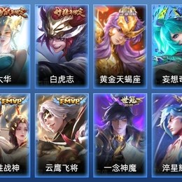 鏡-青焰無極,魯班七號-蔬鄉物語,蒙犽-百解令,嫦娥-拒霜思,阿古朵-江河有靈,呂布-御風驍將,孫尚香-薔薇戀人,夢奇-頑趣,鬼谷子-五穀豐年,雅典娜-黎明之約,牛魔-奔雷神使,蒙犽-狂想玩偶喵,裴擒虎-李小龍,百里玄策-原初追逐者,張飛-虎魄,李元芳-銀河之約,妲己-時之彼端,甄姬-幽恆,韓信-飛衡,莊周-玄嵩,曹操-天狼征服者,蘭陵王-馴魔獵人,蔡文姬-繁星吟遊,上官婉兒-梁祝,魯班七號-獅舞東方,典韋-藍色畫面警告,鍾無豔-王者之錘,嬴政-白晝王子,花木蘭-瑞麟志,孫悟空-大聖娶親,干將莫邪-冰霜戀舞曲,鎧-青龍志,東皇太一-逐夢之光,楊玉環-遇見飛天,花木蘭-青春決賽季,公孫離-蜜橘之夏,貂蟬-逐夢之音,后羿-輝光之辰,馬可波羅-逐夢之星,狄仁傑-魔術師,甄姬-遊園驚夢,孫悟空-至尊寶,趙雲-皇家上將,趙雲-引擎之心,黃忠-火炮紳士