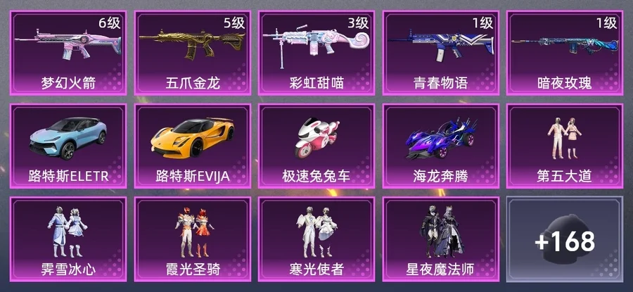 SCAR-L-夢幻火箭,SCAR-L-青春物語,M416-五爪金龍,SLR-暗夜玫瑰,M249-彩虹甜喵,AKM-影襲,AKM-王牌投手,AKM-繽紛海域,M16A4-甜心亞夢,SCAR-L-青丘仙客,SCAR-L-粉色回憶,GROZA-紫翼聖騎,GROZA-春暖花開,GROZA-田園牧歌,GROZA-青春物語,GROZA-治癒之星,AUG-耀粉歌者,AUG-幻夢音符,AUG-聖光天使,QBZ-飛馳魅影,M762-深海曼妙,M762-瑞龍福將,M762-甜心寶貝,Mk47-洛神天依,Mk47-妙紅點點,G36C-炙焰牛王,G36C-青丘仙客,AC-VAL-彩虹甜喵,AC-VAL-甜心亞夢,AC-VAL-快閃甜心,蜜獾-垂柳戲鴨,蜜獾-嬌憨豬豬,Kar98K-夢幻火箭,Kar98K-飛馳魅影,M24-影襲,M24-治癒之星,AWM-恐龍拽拽,Win94-瑞龍福將,AMR-妙紅點點,SKS-迅猛狂鯊,VSS-田園牧歌,Mini14-異彩先驅,Mini14-夢幻火箭,Mini14-穿刺龍蝦,Mini14-旋轉彩虹,Mini14-星夜魔法師,Mk14-童趣迷兔,Mk14-治癒之星,SLR-嬌憨豬豬,MK20-H-快閃甜心,UZI-嬌憨豬豬,UMP45-粉色回憶,UMP45-詭娃娃,Vector-田園牧歌,Vector-暗夜玫瑰,Vector-治癒之星,湯姆遜-耀粉歌者,湯姆遜-異彩先驅,MP5K-藍莓炮彈,P90-快閃甜心,P90-飛馳魅影,S1897-飛馳魅影,S1897-星夜魔法師,S1897-暗夜鎏金,S12K-童趣迷兔,S12K-垂柳戲鴨,S12K-瑞龍福將,S12K-暖熊萌萌,S12K-嬌憨豬豬,DBS-聖光天使,DBS-甜心亞夢,DBS-彩虹甜喵,SPAS-12-田園牧歌,M249-妙紅點點,DP-28-甜心亞夢,DP-28-橘柚傾心,DP-28-甜心寶貝,MG3-妙紅點點,MG3-瑞龍福將,MG3-青春物語,MG3-第五大道