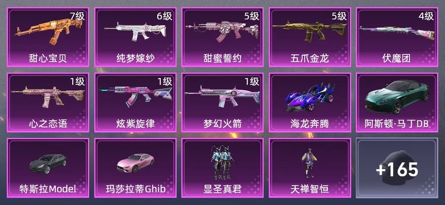 AKM-甜心寶貝,AKM-炫紫旋律,SCAR-L-夢幻火箭,SCAR-L-純夢嫁紗,M416-心之戀語,M416-五爪金龍,M762-甜蜜誓約,Kar98K-伏魔團,AKM-萌趣顏糰子,AKM-四聖煥新,AKM-PEL轟鳴競夢者,M16A4-機械英豪,M16A4-魔法學院,SCAR-L-金風玉露,SCAR-L-暗夜玫瑰,SCAR-L-甜蜜誓約,M416-神秘黑貓,GROZA-懵萌河馬,GROZA-治癒之星,AUG-耀粉歌者,QBZ-神秘黑貓,QBZ-原初聖火,M762-拳皇97,M762-甜心寶貝,M762-瑞龍福將,M762-動感兔斯基,Mk47-妙紅點點,G36C-懵萌河馬,G36C-金風玉露,G36C-不夜海上花,AC-VAL-快閃甜心,Kar98K-藍莓炮彈,Kar98K-古堡領主,Kar98K-勇闖險境,Kar98K-夢幻火箭,M24-眾神之王,AWM-不夜海上花,AWM-聖堂之誓,Win94-機械英豪,Win94-瑞龍福將,莫辛納甘-懵萌河馬,AMR-妙紅點點,M200-綠野極光,SKS-勇闖險境,VSS-綠野極光,Mini14-春暖花開,Mini14-原初聖火,Mini14-夢幻火箭,SLR-眾神之王,SLR-四聖煥新,QBU-不夜海上花,M417-豬豬俠,MK20-H-快閃甜心,UZI-古堡領主,UZI-金風玉露,UZI-眾神之王,UMP45-豬豬俠,Vector-PEL轟鳴競夢者,湯姆遜-勇闖險境,野牛-機械英豪,野牛-沙丘之主,MP5K-眾神之王,P90-快閃甜心,S686-不夜海上花,S1897-百萬伏特,S1897-春暖花開,S1897-神秘黑貓,S1897-勇闖險境,S1897-綺夢青鸞,S12K-瑞龍福將,S12K-機械英豪,S12K-幻影戰神,S12K-PEL轟鳴競夢者,M249-拳皇97,M249-四聖煥新,M249-妙紅點點,M249-百萬伏特,M249-古堡領主,DP-28-甜心寶貝,DP-28-原初聖火,MG3-妙紅點點,MG3-瑞龍福將,PKM-懵萌河馬