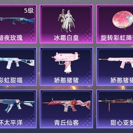 M416-風花雪月,SLR-暗夜玫瑰,AKM-奇異狩獵者,AKM-環太平洋,AKM-萌趣顏糰子,AKM-恐龍拽拽,M16A4-甜心亞夢,SCAR-L-青丘仙客,M416-緋紅前夜,AUG-耀粉歌者,QBZ-飛馳魅影,M762-瑞龍福將,M762-詭娃娃,G36C-時空追擊者,AC-VAL-甜心亞夢,AC-VAL-彩虹甜喵,蜜獾-嬌憨豬豬,Kar98K-飛馳魅影,Win94-瑞龍福將,SKS-時空追擊者,SLR-嬌憨豬豬,UZI-嬌憨豬豬,UMP45-時空追擊者,MP5K-怪笑瘋兔,P90-飛馳魅影,S1897-飛馳魅影,S12K-嬌憨豬豬,S12K-瑞龍福將,DBS-時空追擊者,DBS-甜心亞夢,DP-28-甜心亞夢,MG3-瑞龍福將