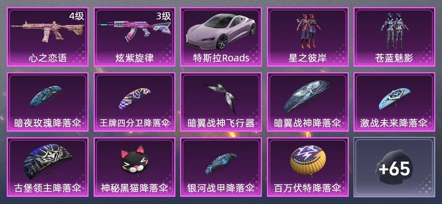暗翼戰神降落傘,神秘黑貓降落傘,百萬伏特降落傘,銀河戰甲降落傘,王牌四分衛降落傘,激戰未來降落傘,暗夜玫瑰降落傘,古堡領主降落傘,暗翼戰神飛行器