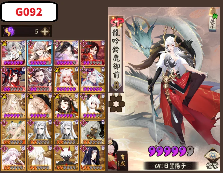 A033(2等)SP蒼風一目連 +SSR鬼切 = 300T