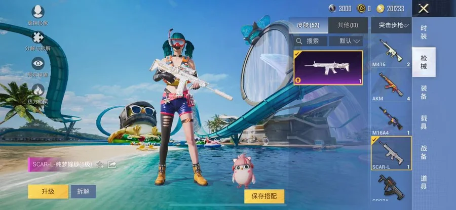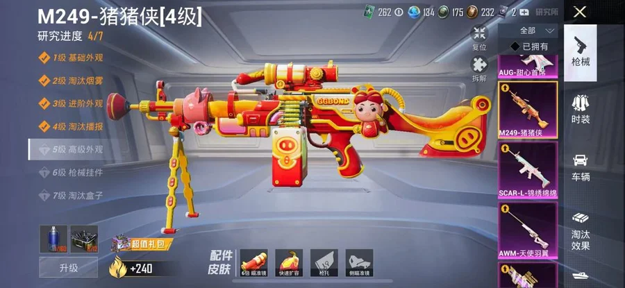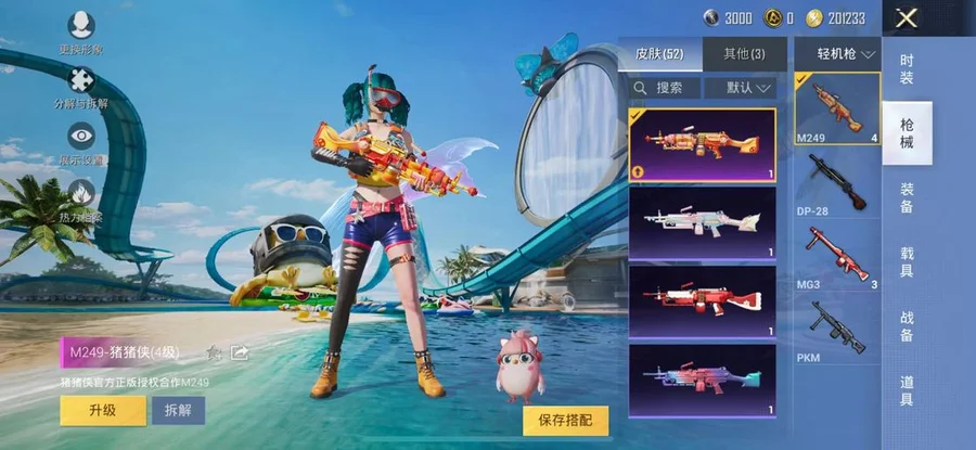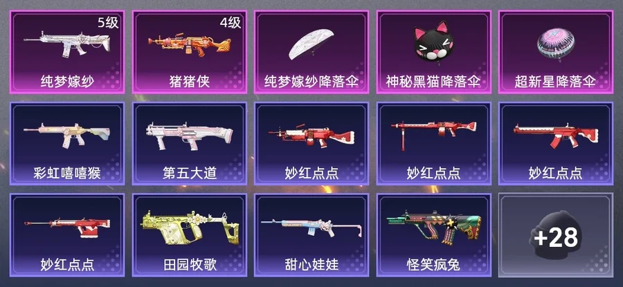 SCAR-L-純夢嫁紗,M249-豬豬俠,M416-彩虹嘻嘻猴,AUG-怪笑瘋兔,AUG-耀粉歌者,Mk47-妙紅點點,AC-VAL-快閃甜心,AMR-妙紅點點,M200-驚鴻俠骨,SKS-未來歌姬,Mini14-甜心娃娃,M417-驚鴻俠骨,MK20-H-快閃甜心,MK20-H-蓮影清波,Vector-田園牧歌,P90-快閃甜心,DBS-第五大道,M249-妙紅點點,M249-蓮影清波,MG3-妙紅點點,MG3-驚鴻俠骨
