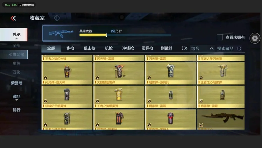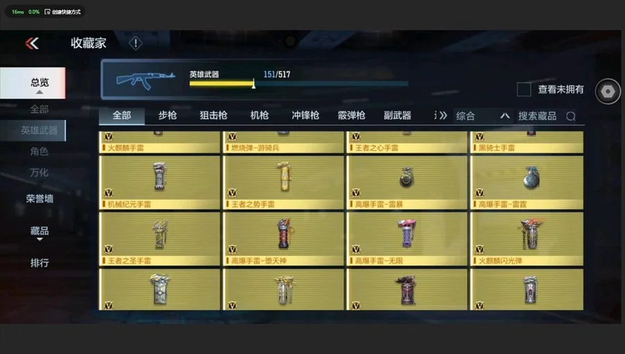王者之影,王者之聖,王者幻神,王者之神,王者之怒,王者之跡,王者之鋒,王者之痕,王者之心手雷,王者之心煙霧彈,王者之勢手雷,王者之勢煙霧彈,王者之勢閃光彈,王者之聖手雷,王者之聖閃光彈