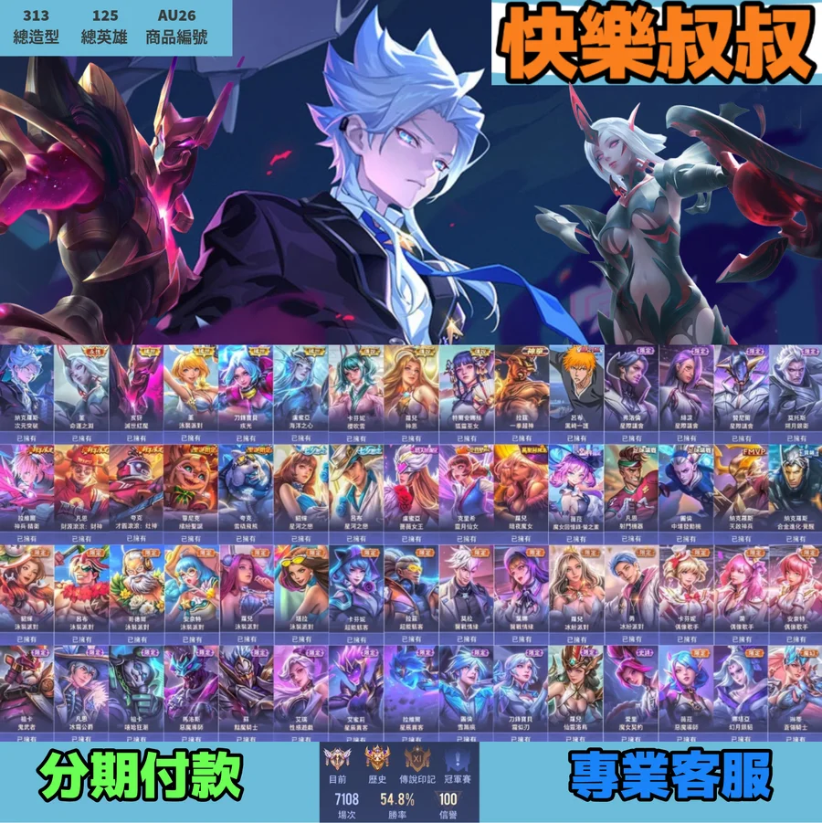 【編號AU23】月繳1400元起 主打納克群星朽木莫拉無盡朱雀白虎紅蓮槍魂無限錦衣衛等多直購限定造型