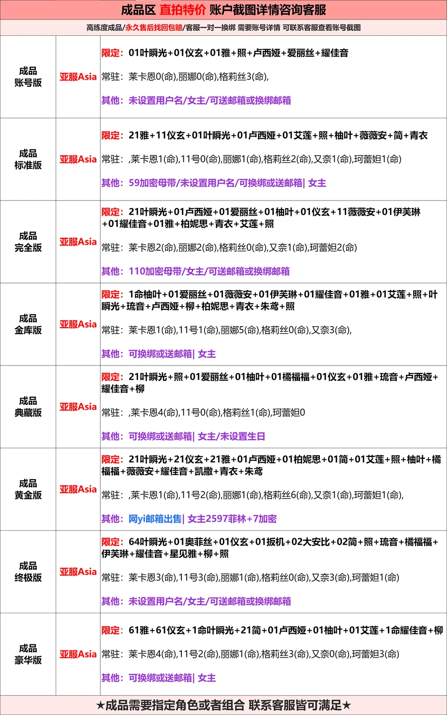 帳號一律不幫留 專屬是方便購買 不是幫留  如果下單後 沒帳號 一律換組或不互評退款 購買表示同意 介意勿買