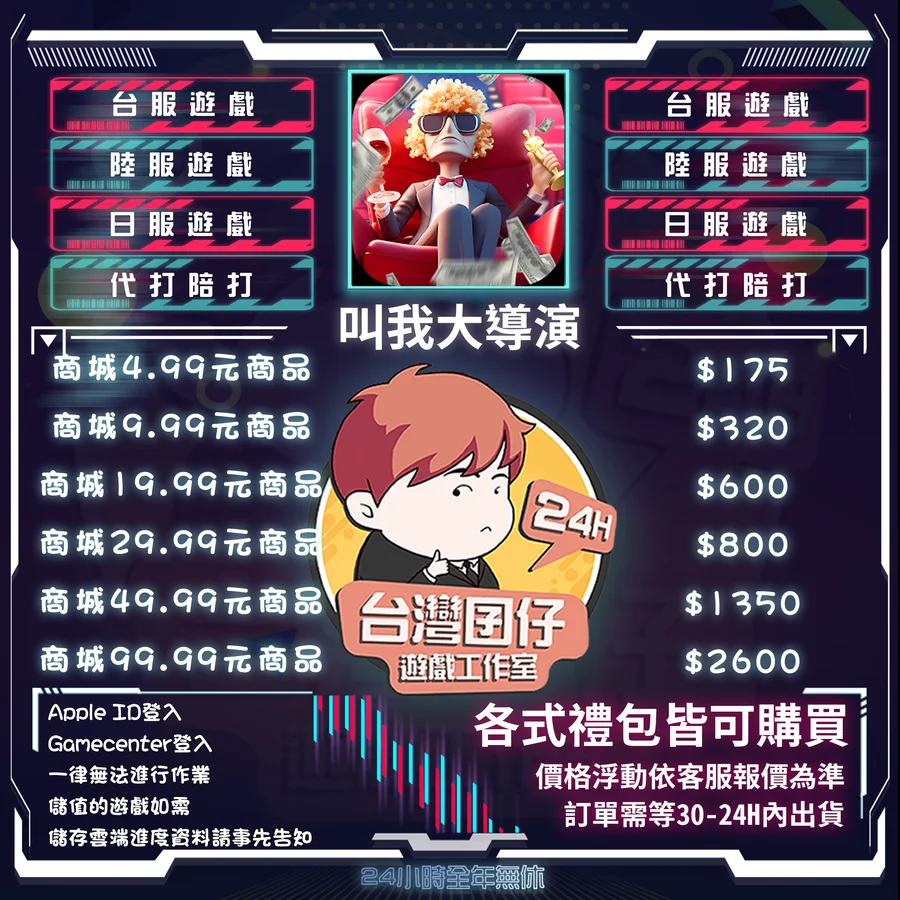 6.台灣囝仔台陸手遊代儲,純粹提供代儲服務並收取服務費,無賺取中間差價