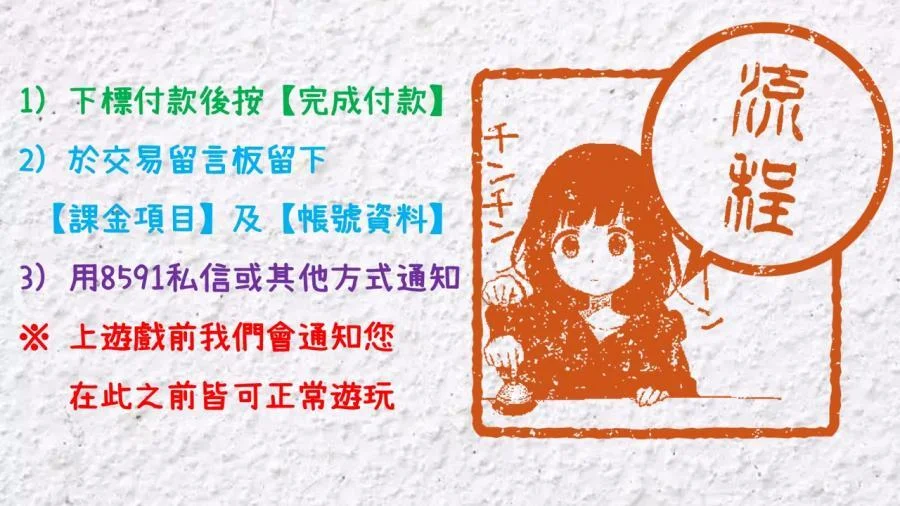 價目表上沒有的項目麻煩來訊詢問(請提供遊戲內購價)