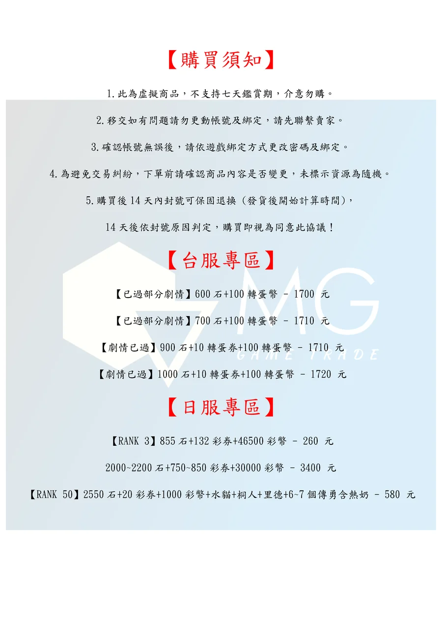 4.為避免交易糾紛,下單前請確認商品內容是否變更,未標示資源為隨機。