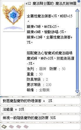 +12魔法反射神盾/變異卡利斯格卡片(一般怪魔防忽視50%)