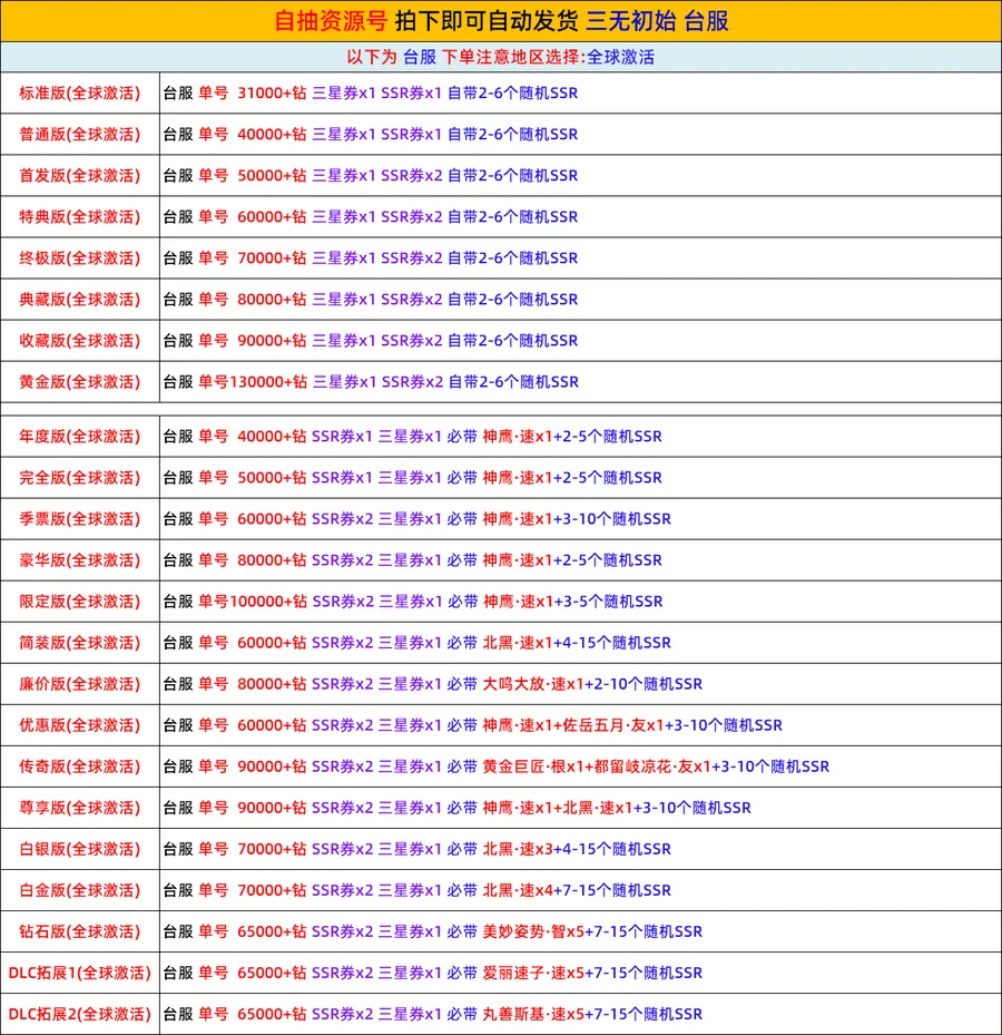遊戲帳號內容已清楚打出來 沒打出來的皆為隨機附送 不要自己亂加東西 資源 再說帳號上怎沒有 後續出現問題 一律以賣家公布為主 介意勿買 帳號一律不幫留 專屬是方便購買 不是幫留 如果下單後 沒帳號 一律換組或不互評退款 購買表示同意 介意勿買 若需綁定個人訊息或遊玩 如手機 身分證 或是 下載遊戲 VPN 等 請自行綁定或GOOGLE 不能綁定者或無法遊玩者 無法退款 介意勿買 購買後 諾帳號 信箱 手機 VPN 等帳號安全性相關 需要額外花費 才能改密或者遊玩 綁定私人個資等問題 賣家無權處理綁定 或者代付 故若交易後有需額外支出 不能綁定不能修改密碼者或無法遊玩者 請買家自行處