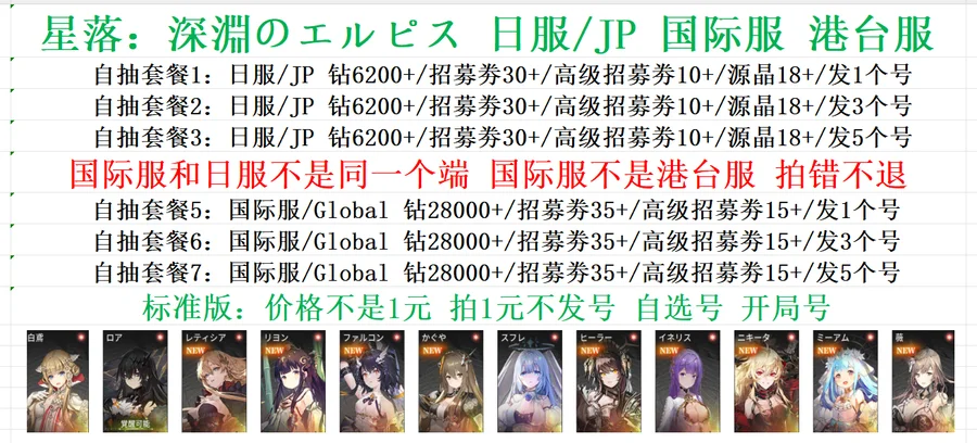 星落:深淵的精靈 星落:深淵のエルピス日服初始號自選號組合號