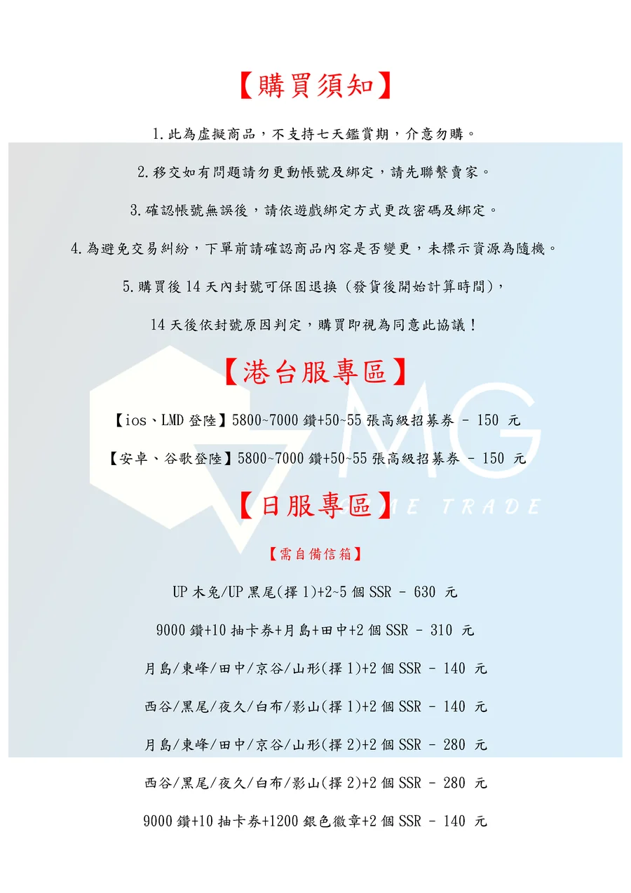 4.為避免交易糾紛,下單前請確認商品內容是否變更,未標示資源為隨機。