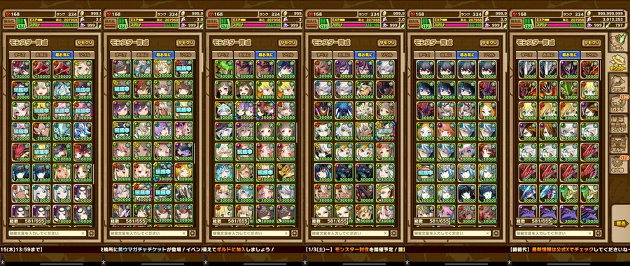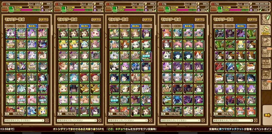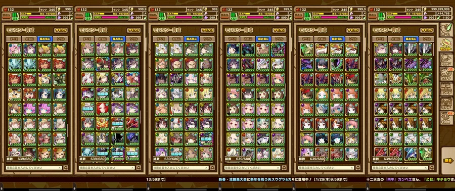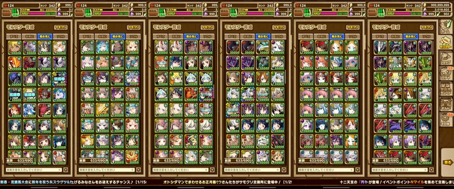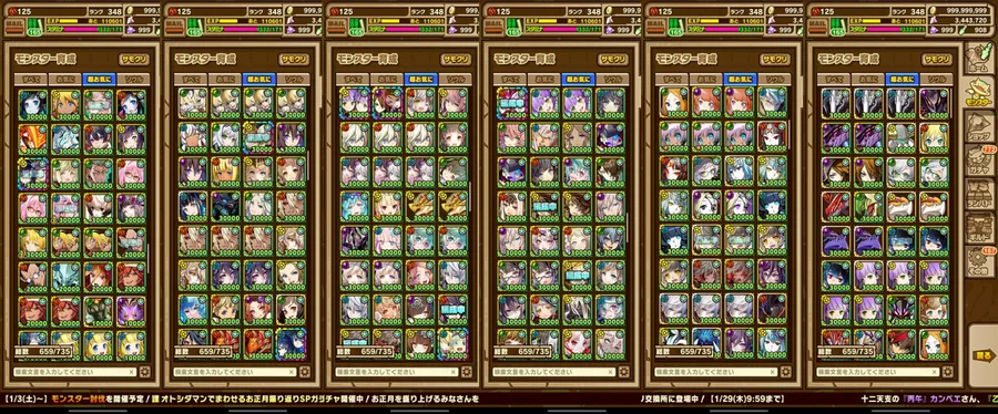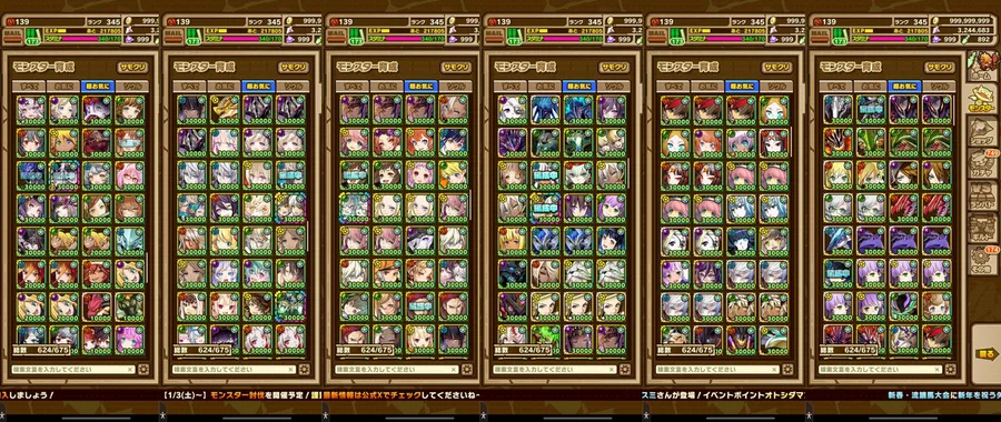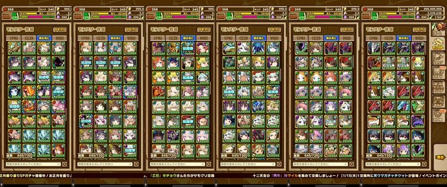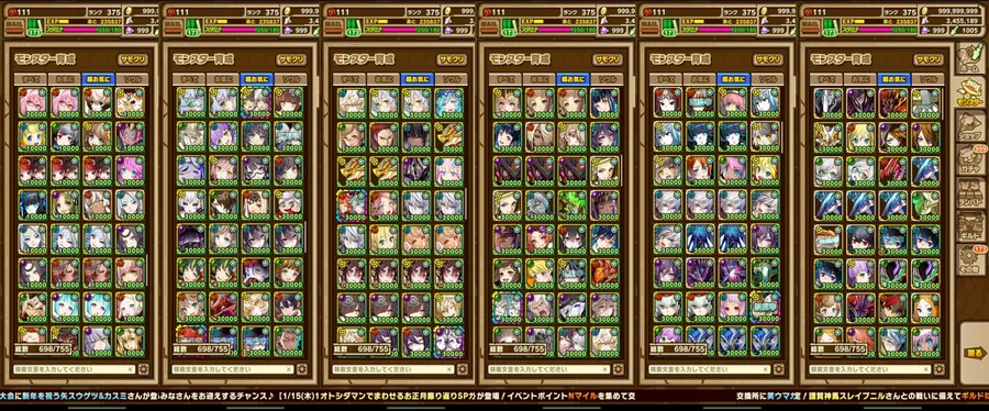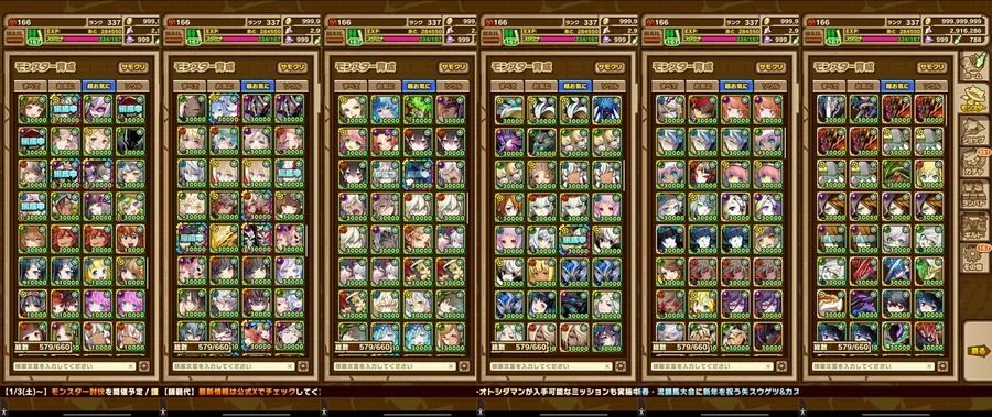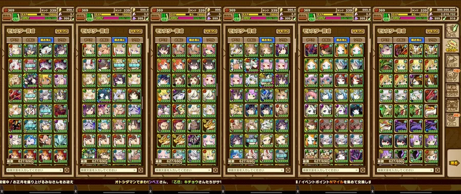 369:等級:311(可能會增加)、石頭:1748(可能會增加),光開眼神聖天魔+嬉遊姬+木死二神+火怪刃+二代科塞特斯+水劍神機+刀主兔隱+刀主臣子+炎臣+火死二神+水天魔+新年暗死二神+黎明龍+二代媚魔(已覺醒)+鋼吼龍刀+調教師+鋼吼岩泉大魔女+其他限定(實收4000)